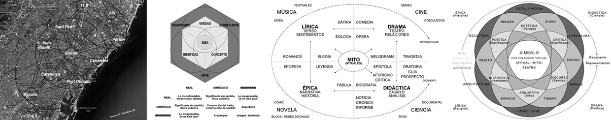 3 abril, 2013cKalendarios (Sin fecha)Publicado en Arte, Catálogo, Dibujos, Entea, Ma(k)ia, Material, ReflexióncKalendarios = Espacio / Tiempo Cábala sobre el plano de Barcelona; Tríada lacaniana (Zizek) + géneros = Materialismo simbólico.